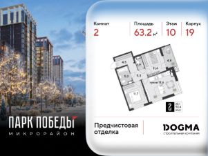 Срок сдачи: 1 кв. 2026, общей площадью 63.2 кв.м., на 10 этаже.