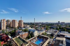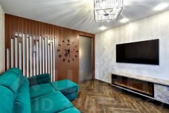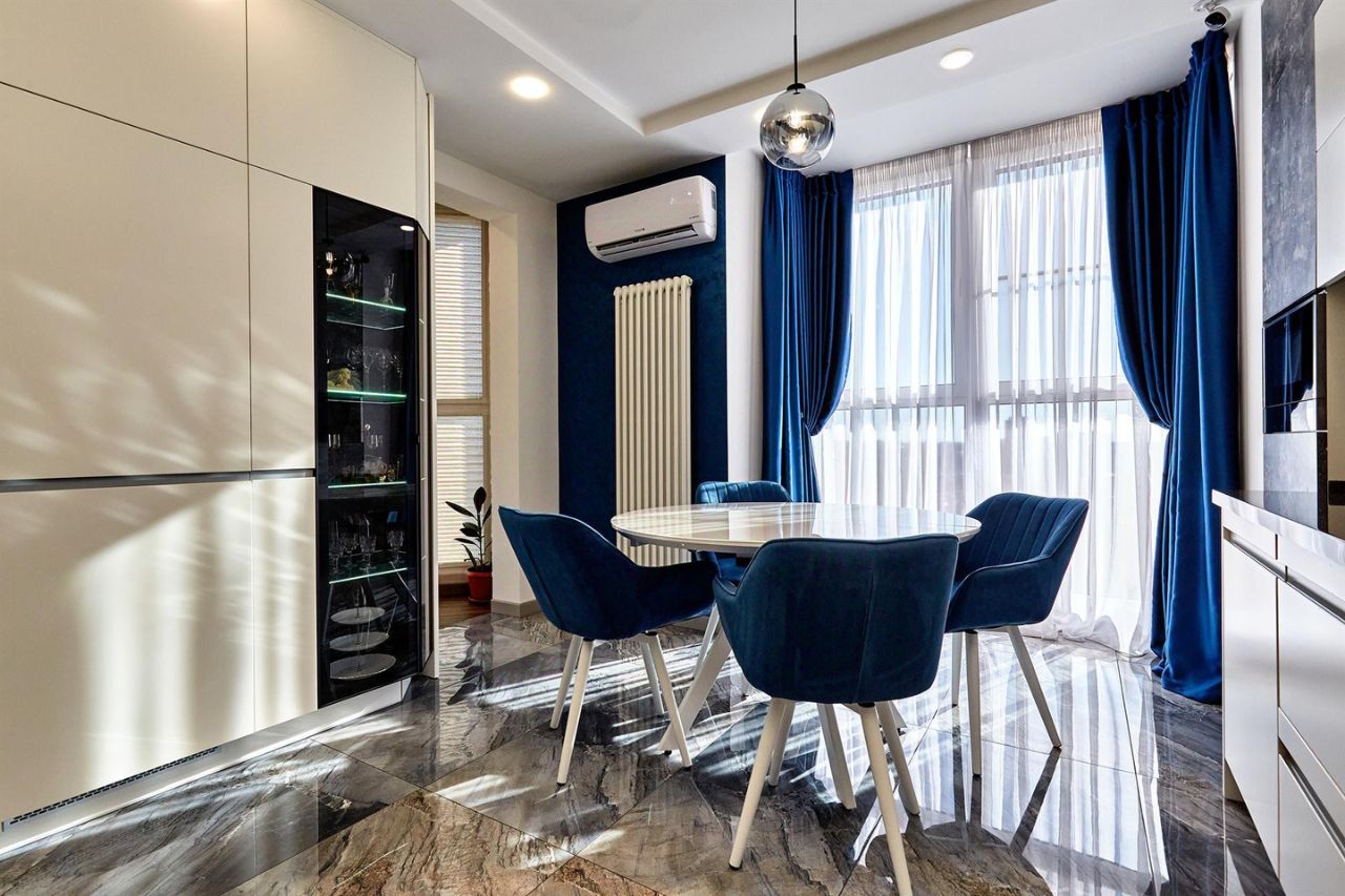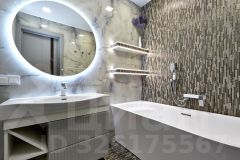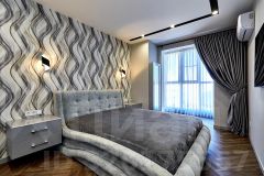 Отделка в квартире выполнена из дорогих строительных материалов, сделана усиленная шумоизоляция потолка, декоративная штукатурка стен (ручная работа), потолки из гипсокартона/парящие, теплые полы (плитка), светодиодная подсветка, шторы с электроприводом, плитка керамогранит, вертикальные дизайнерские радиаторы.