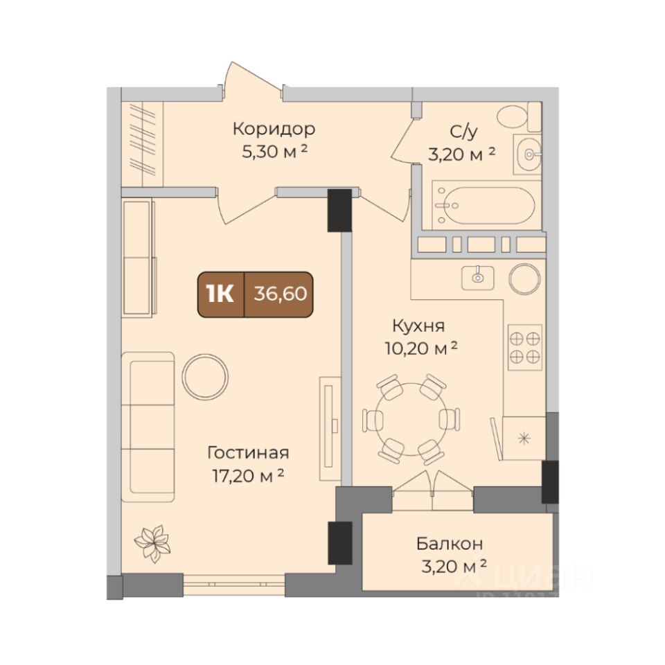 Продаётся 1-комнатная квартира в строящемся доме (Литер 1), срок сдачи: II-кв. 2026, общей площадью 36.6 кв.м., на 2 этаже. Новый жилой комплекс "Опера" от застройщика "СЗ АИБ" расположен по адресу Россия, Краснодар, Музыкальный мкр, улица имени Сергея Есенина.