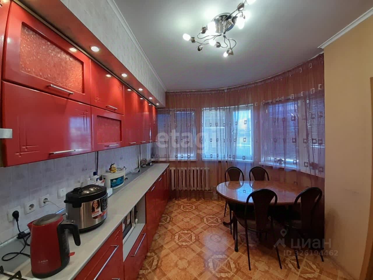 Общая площадь 104,6 кв.м., жилая 93,8 кв.м., кухня 15,1 кв.м. Квартира светлая, очень теплая. Санузел совмещенный в плитке. Окна металлопластиковые. Входная дверь металлическая. Балкон застеклен.