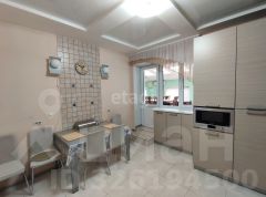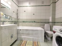 Все комнаты изолированные, санузел совмещенный в плитке. В квартире просторная кухня 12.4 кв.м. с выходом на шикарную лоджию-веранду 55.2 кв.м. Отличная планировка, удобная для комфортного расположения мебели, есть гардеробная и кладовая, сделан качественный ремонт, теплый пол, установлены счетчики на свет, воду, тепло. Окна выходят на две стороны дома.