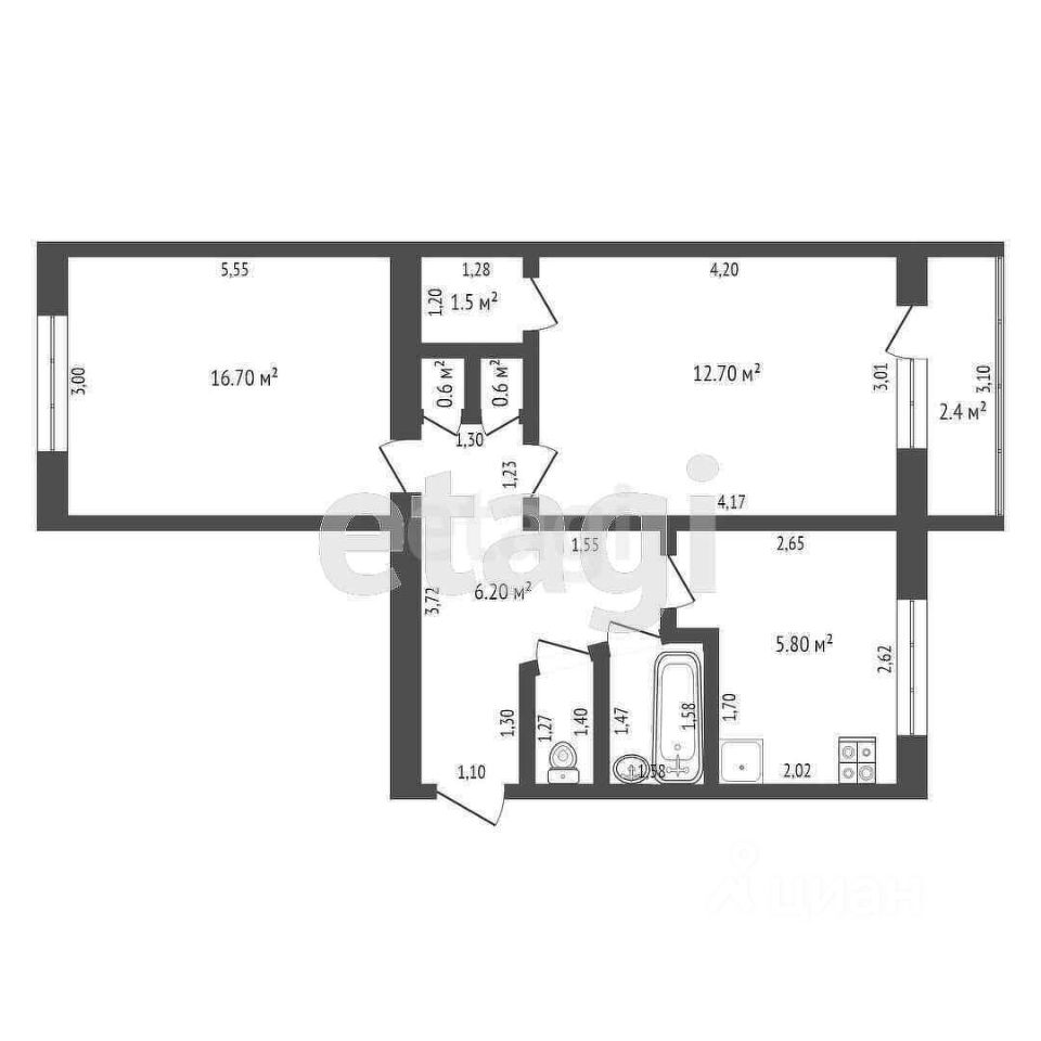 Общая площадь квартиры 47 кв.м., жилая 29,5. Комнаты изолированные на две стороны, санузел раздельный, кухня 6 кв.м.