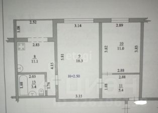 Общая площадь составляет 49,2 кв.м, жилая 29,3 кв.м, кухня 11 кв.м.