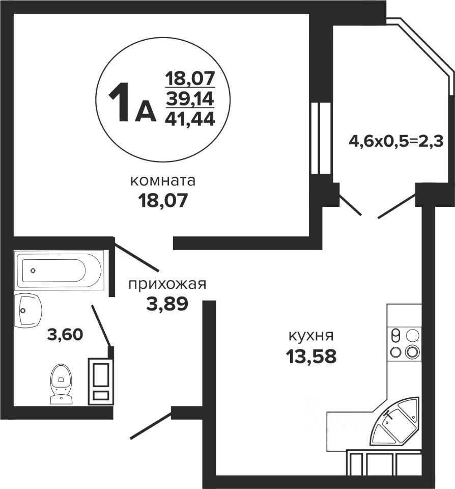 Общая площадь41,44 м²