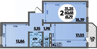 Продаётся 2-комнатная квартира в сданном доме (Литер 14), срок сдачи: I-кв. 2025, общей площадью 61.79 кв.м., на 2 этаже. РАСПОЛОЖЕНИЕ