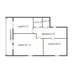 Лоджия с выходом из 2х комнат, площадью 6,6 м2.