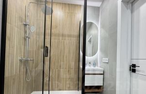 Отделка: Крупноформатный керамогранит, износостойкий ламинат, межкомнатные двери под покраску (эмаль), дорогая сантехника.