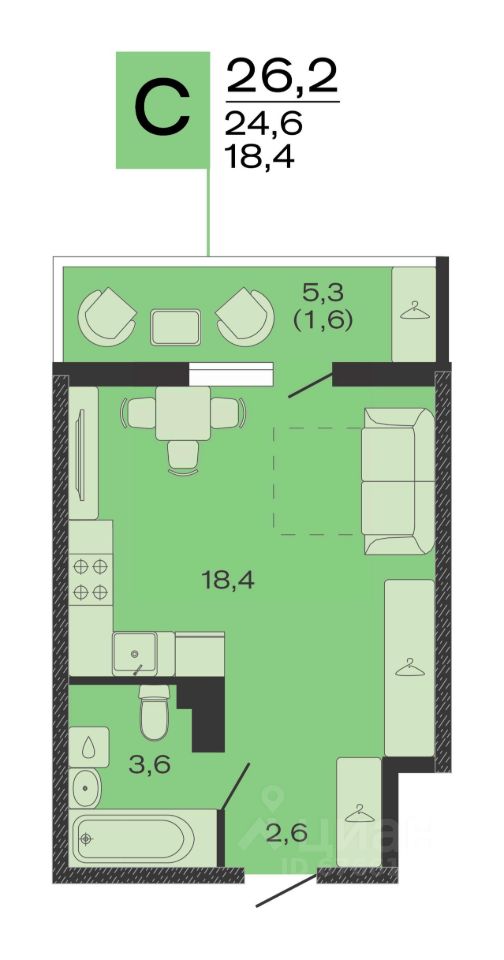 В продаже квартира в жилом комплексе "Дзенпарк" от застройщика ГК "Лендекс"!