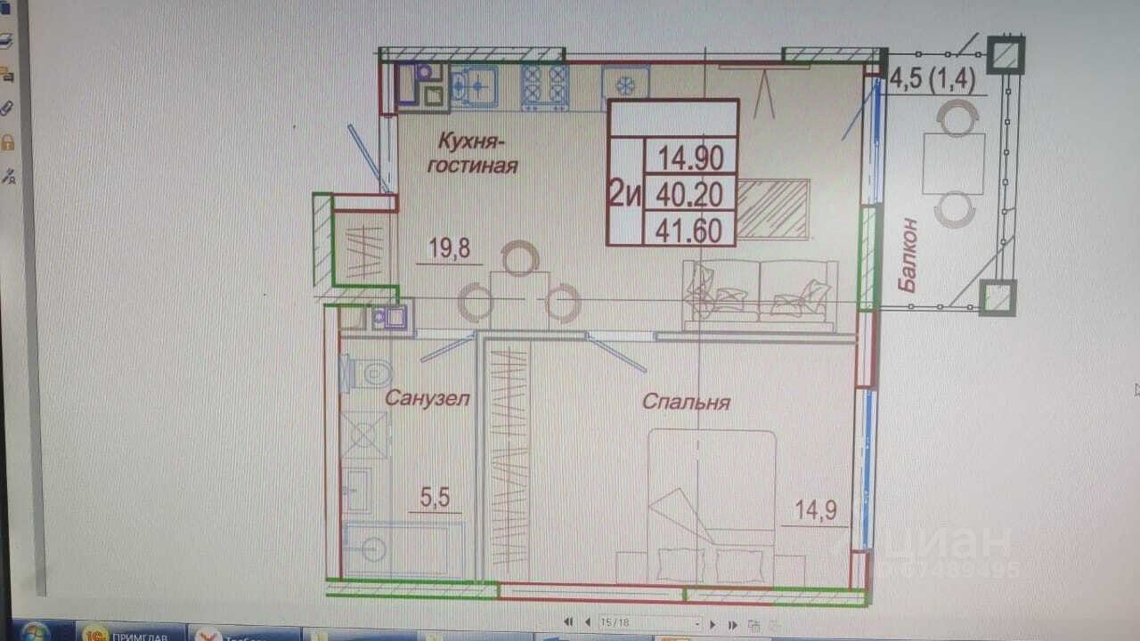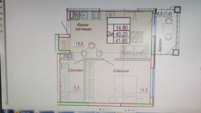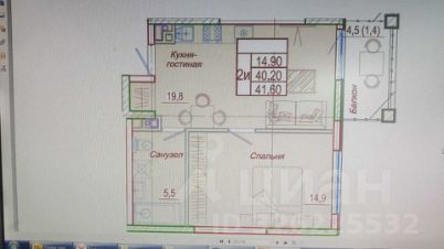 Планировка: Евро2 функциональная планировка с кухней-гостиной и отдельной спальней.