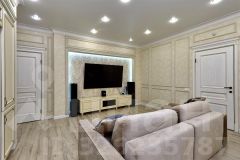- Квартиру дополняют телевизор Samsung с диагональю 75 дюймов и Hi-Fi акустика от Jamo и Yamaha.
