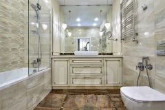 Стиль: Евро-трешка, с дизайнерским ремонтом, выполненным в 2019 году. Использованы высококачественные отделочные материалы: керамическая плитка и обои от известных брендов Roberto Cavalli и Marburg.