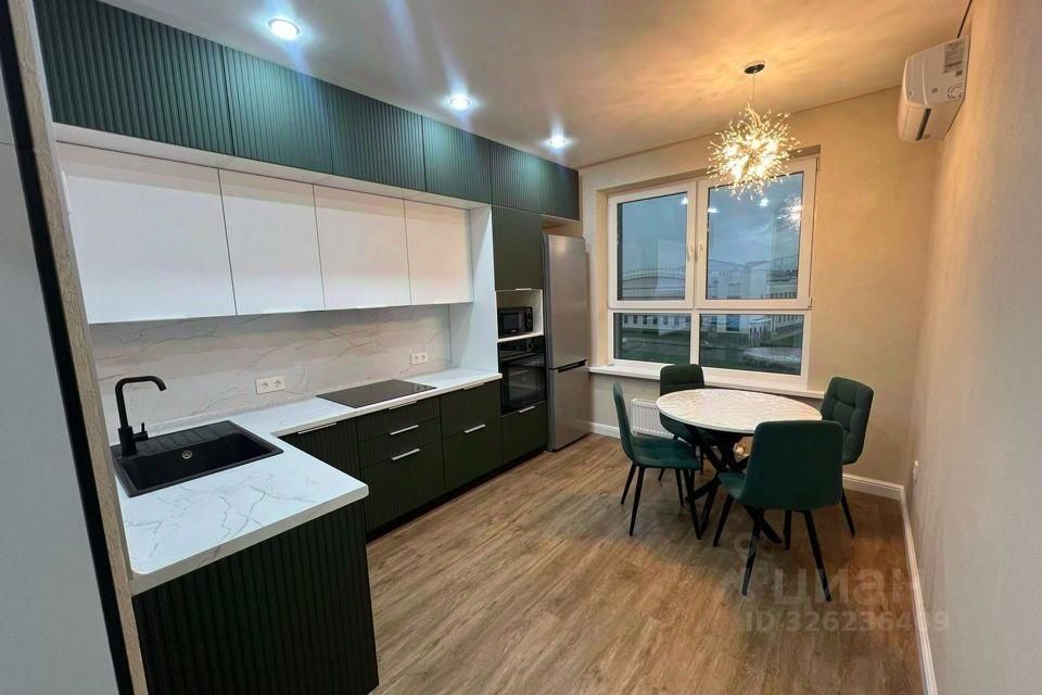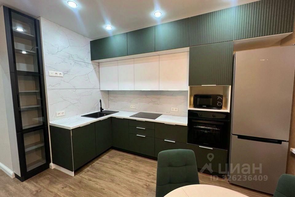 Квартира поражает своим продуманным дизайнерским ремонтом, который гармонично сочетает комфорт и стиль. Жилая площадь составляет 47.5 квадратных метров, кухня занимает 12 квадратных метров, предоставляя достаточно места как для приготовления пищи, так и для семейных ужинов. Санузел совмещённый, что является удобным решением для современного жилья.