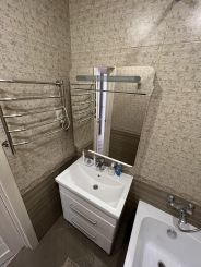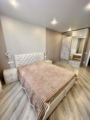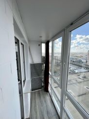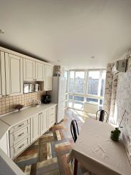 Сделан качественный ремонт, все делалось для себя. Просторная кухня объединена с балконом и установлены панорамные окна. Также панорамные окна установлены на изолированном балке. Полы в кухне, ванной и туалете выложены плиткой, в остальных комнатах - ламинат. Установлены две сплит системы.