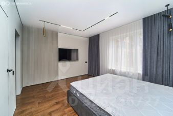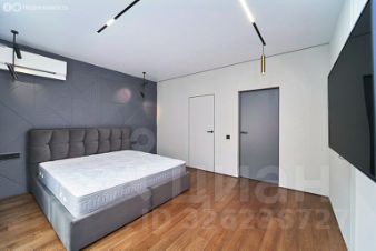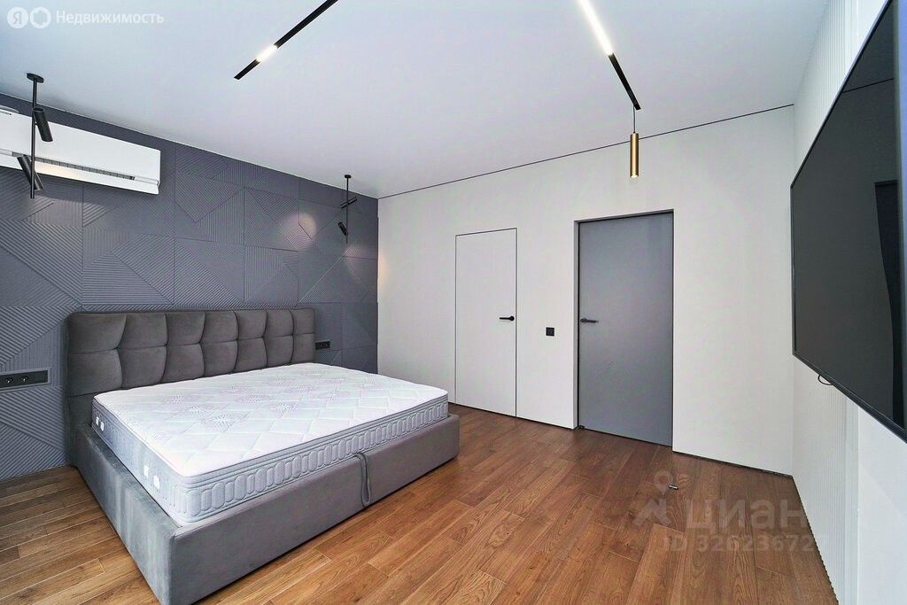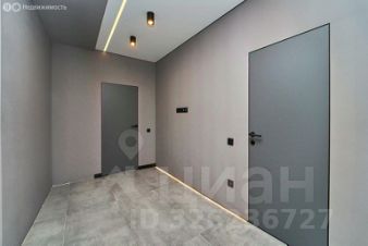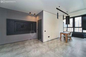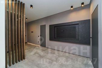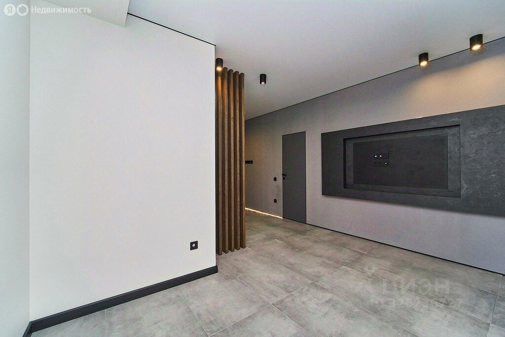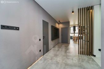 Квартира также обладает ламелями из дуба между гостиной и прихожей, а управление освещением и системой кондиционирования осуществляется с помощью интеллектуальной системы "Алиса". Шпон под телевизор выполнен из натурального вулканического камня, придающего интерьеру изысканность.