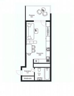 Планировка: Студия с выгодной планировкой.