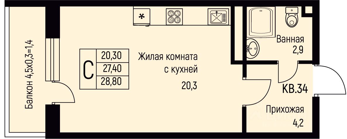 28,8 м²
