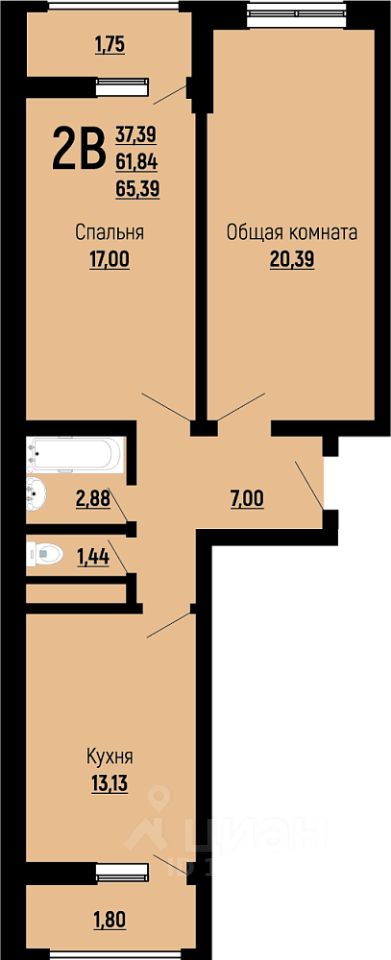 Общая площадь65,39 м²
