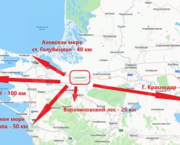 Транспортная доступность: автобусная остановка в 200 м, Азовское море (ст. Голубицкая) в 40 мин езды, Чёрное море (г. Анапа и ст. Благовещенская) в 1 часе езды, Крымский мост в 1,5 езды, г. Краснодар 1,5 часа езды.