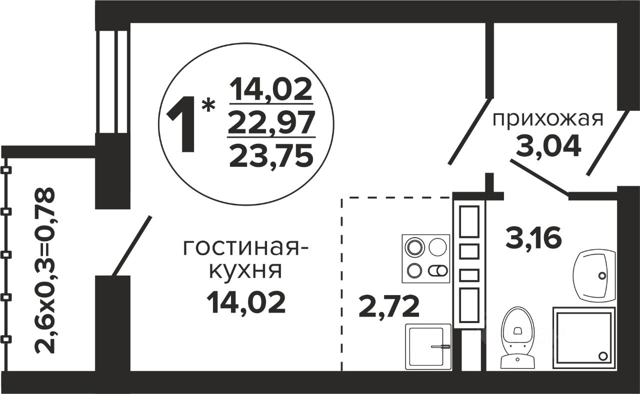 Общая площадь23,75 м²