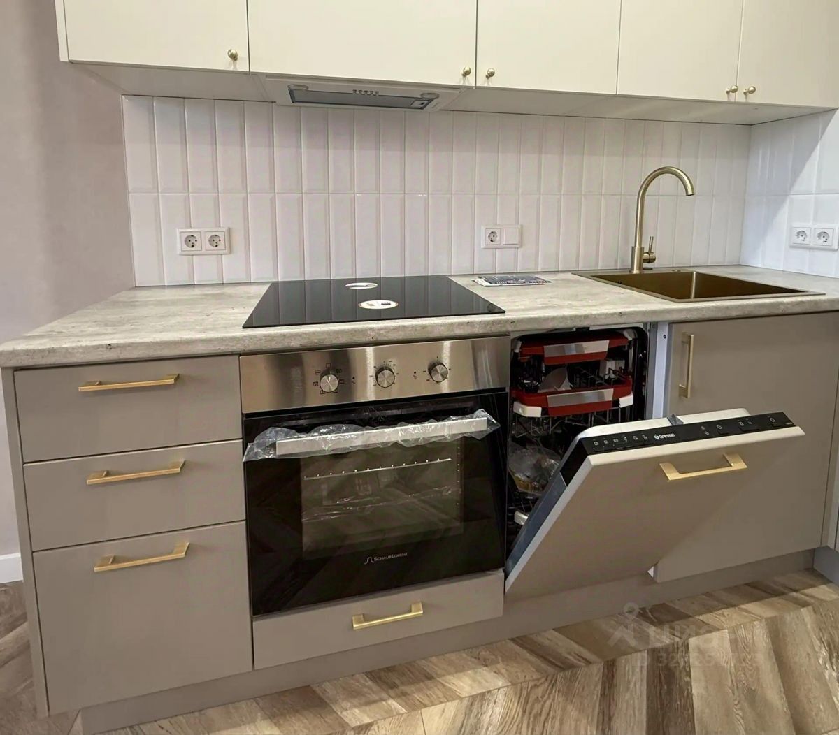 Функциональная планировка - просторная кухня-гостиная с современной техникой, включая посудомоечную машину