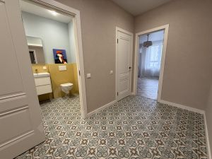 Дизайнерский ремонт - использованы дорогие материалы: стильная сантехника, комфортная не кричащая цветовая гамма, долговечные напольные покрытия,