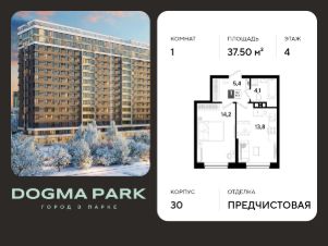 В продаже 1-комнатная квартира от застройщика! Мкр. "DOGMA PARK" г. Краснодар, Литер 35 Срок сдачи: 4 кв. 2027, общей площадью 37.5 кв.м., на 4 этаже.