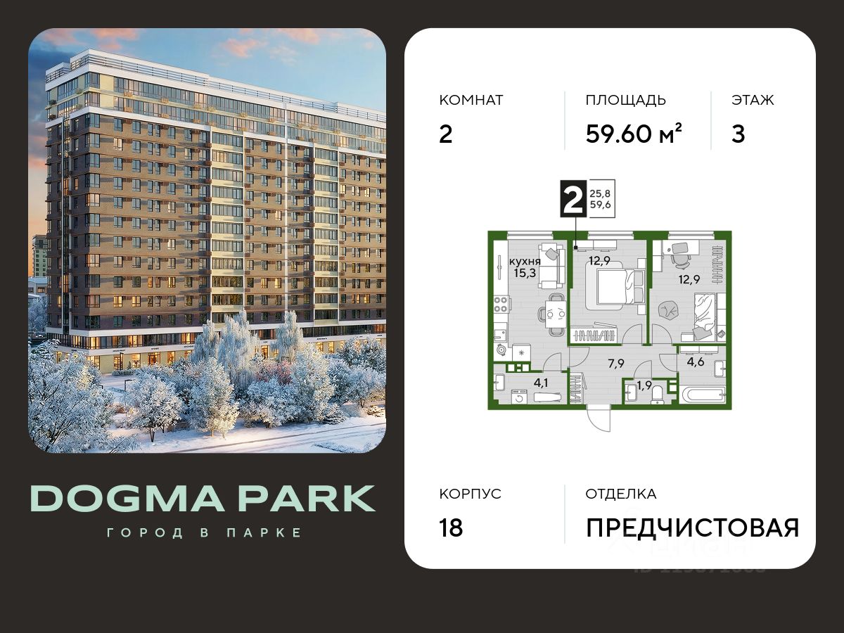 В продаже 2-комнатная квартира от застройщика! Мкр. "DOGMA PARK" г. Краснодар, Литер 18 Срок сдачи: 4 кв. 2027, общей площадью 59.6 кв.м., на 3 этаже.