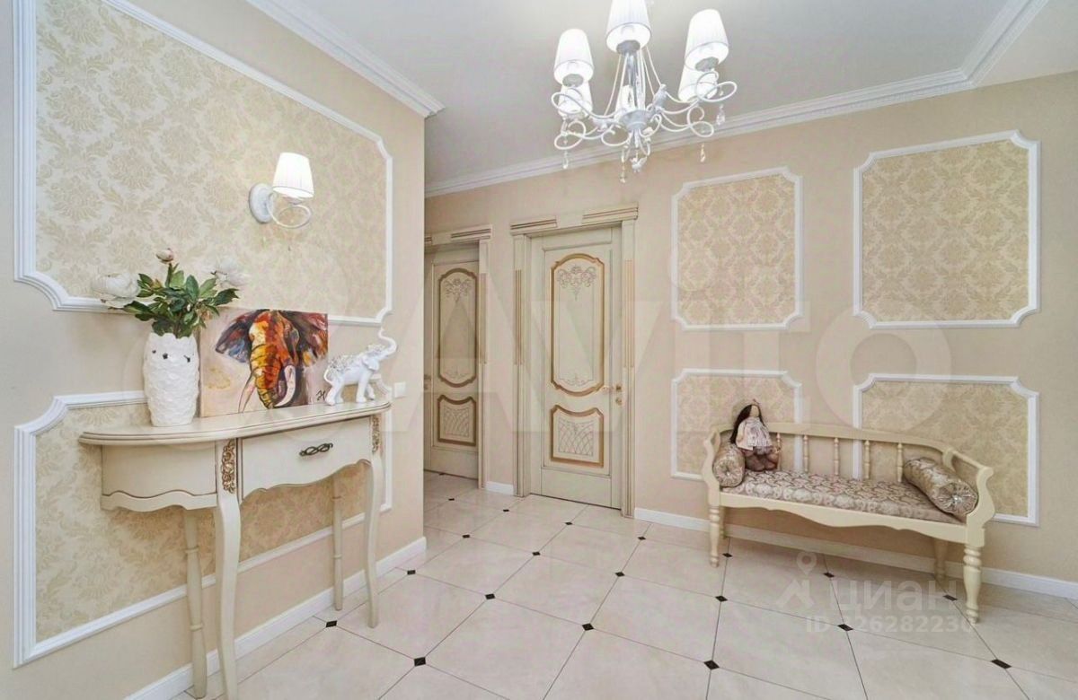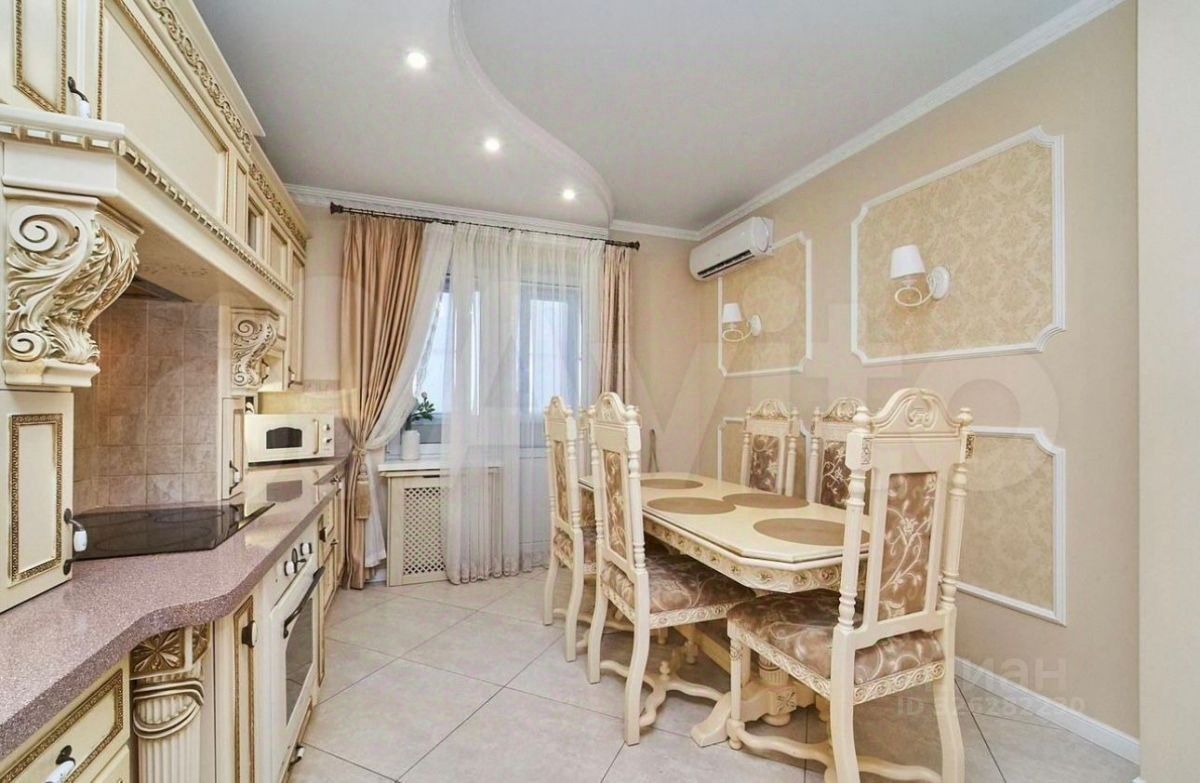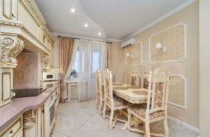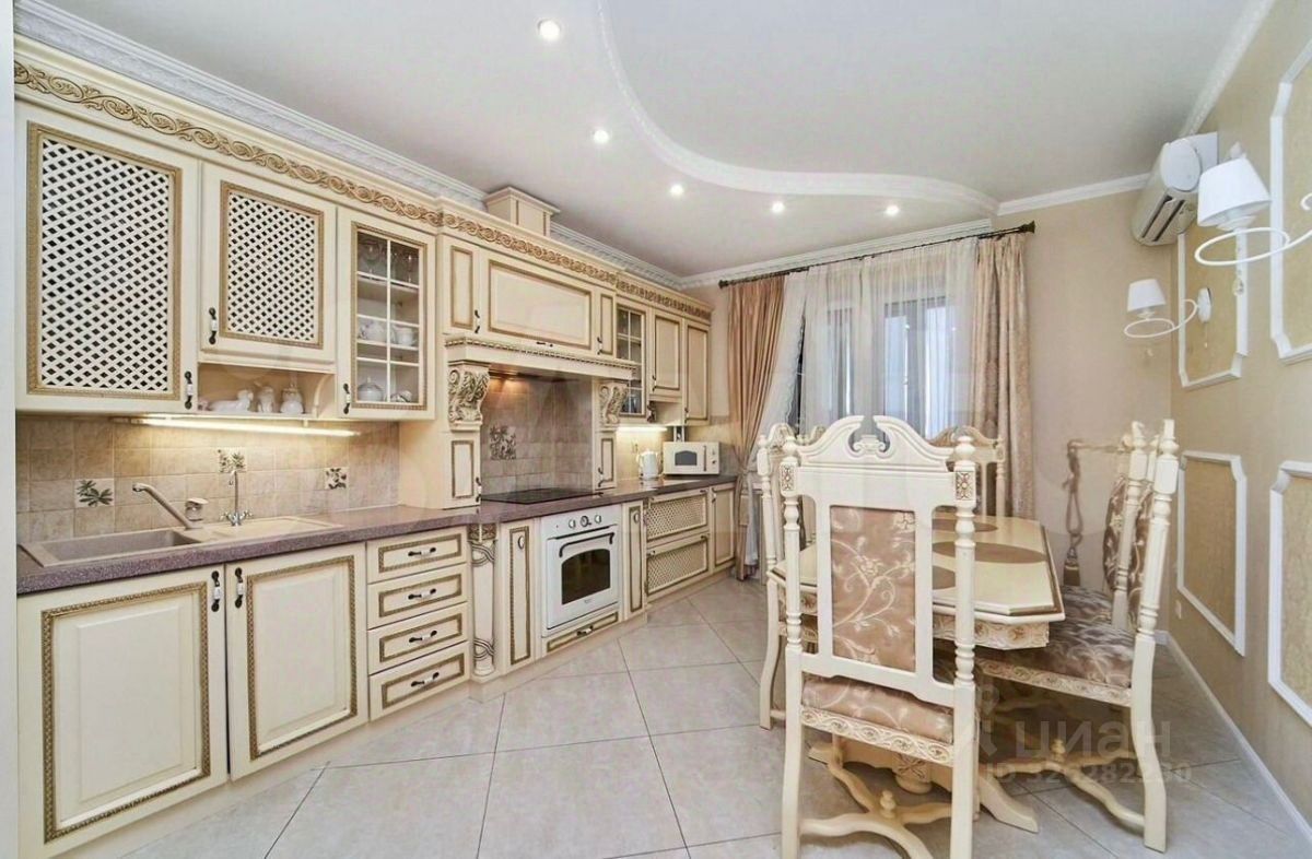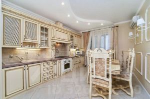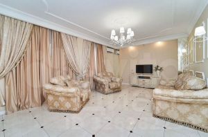 Выполнен дорогой ремонт в классическом стиле: кухня из массива, санузел с хорошей сантехникой, просторные спальни с изысканной мебелью, встроенные шкафы и много интерьерных украшений.