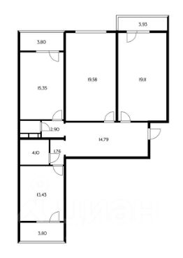 3-комнатная квартира 92 кв.м в ЮМР под ремонт