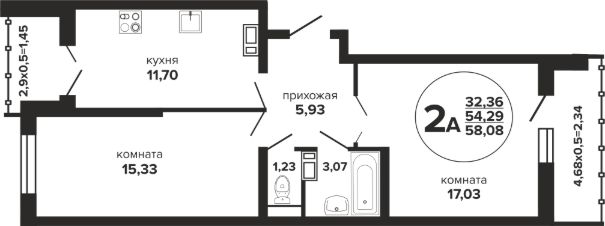 Общая площадь58,08 м²