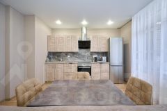 В квартире выполнен евроремонт в классическом стиле. На кухне установлен кухонный гарнитур со встроенной техникой: посудомоечной машиной, варочной панелью, духовым шкафом, встроенной микроволновой печью и холодильником.