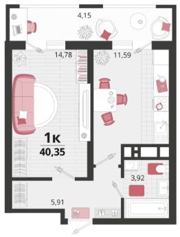 Продаётся 1-комнатная квартира в строящемся доме (Литер 13), срок сдачи: I-кв. 2026, общей площадью 40.35 кв.м., на 2 этаже. "Родные просторы"- самодостаточный