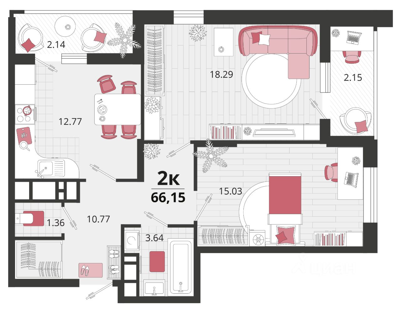 Продаётся 2-комнатная квартира в сданном доме (Литер 24), срок сдачи: IV-кв. 2024, общей площадью 65.5 кв.м., на 19 этаже. "Родные просторы"- самодостаточный