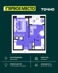 Жилой район "Первое место"- один из самых масштабных проектов в России. На территории 71 га 18 кварталов, 31 дом переменной этажности от 8 до 18 этажей, собственный парк 9 га, храмовый комплекс, пешеходный бульвар "Круг семьи", детские и спортивные площадки, мангальные зоны и различные локации для отдыха. В шаговой доступности действующие муниципальные образовательные учреждения: школа на 1 100 мест и детский сад на 250 мест. Помимо этого, в жилом районе "Первое место" построятся школа на 1700 мест с крытым 25-метровым бассейном и 5 детских садов на 1 490 мест. На первых этажах многоуровневых парковок "паркхабов" разместится более 61 тыс м2 коммерческих помещений. Жителям будут доступны собственный фитнес-центр, кафе, рестораны и магазины. В каждом подъезде предусмотрены дизайнерские холлы в стиле лобби отелей, консьерж-сервис, лапомойки, отдельные колясочные и велосипедные. Также в домах будут просторные кладовые помещения и комнаты для хранения почты с почтоматами для получения посылок из маркетплейсов.