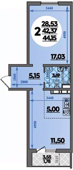 Общая площадь44,15 м²