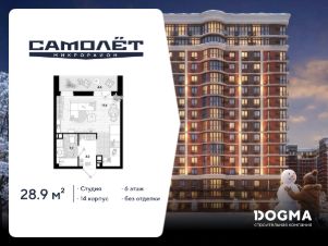 В продаже квартира-студия от застройщика! Мкр. "Самолет" 3 очередь, г. Краснодар, Литер 14 Срок сдачи: 4 кв. 2023, общей площадью 28.9 кв.м., на 6 этаже.