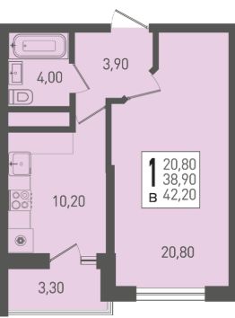 Общая площадь42,2 м²