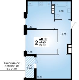 Общая площадь48,8 м²