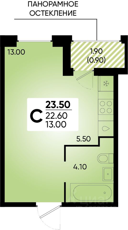 Общая площадь23,5 м²