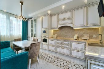 Дизайнерский ремонт: выполнен из качественных материалов с использованием дорогостоящей мебели и техники.