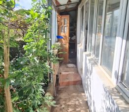 Во дворе навес, закрытый с трёх сторон. Придомовая территория 15м от дома относится к квартире, ещё дополнительных 15 метров огорожено под огород. В огороде посажены деревья: инжир, персики, алыча, груша, вишня, яблони, малиновые, смородиновые и крыжовниковые кусты.