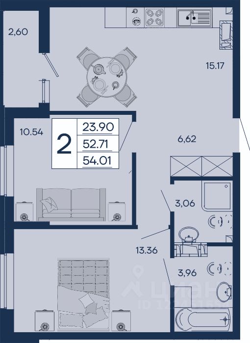 2 комнатная квартира с ремонтом 54,01 м², на 4 этаже в жилом комплексе "Дом 101". ЖК Дом 101 - это уникальное пространство на территории 101 га. Парк 20 га с спортивными площадками и амфитеатром. Школа на 1725 мест и пять детских садов. Благоустроенные дворовые территории с детскими площадками и зонами отдыха создают комфортную среду для семей. 8276