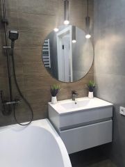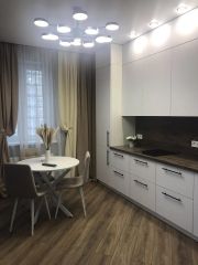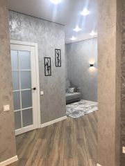 В квартире выполнен стильный ремонт, керамогранит в санузле, прихожей и на кухне-гостиной в единой стилистике. Установлены две сплит-системы, просторная гардеробная. Установлена сейфовая входная дверь. Окна оформлены качественным текстилем. Размещены точечные светильники и люстры. В квартире остается всё как на фото, установлена вся необходимая мебель, можно сразу заехать и жить. Или прекрасно подойдет для сдачи в аренду.