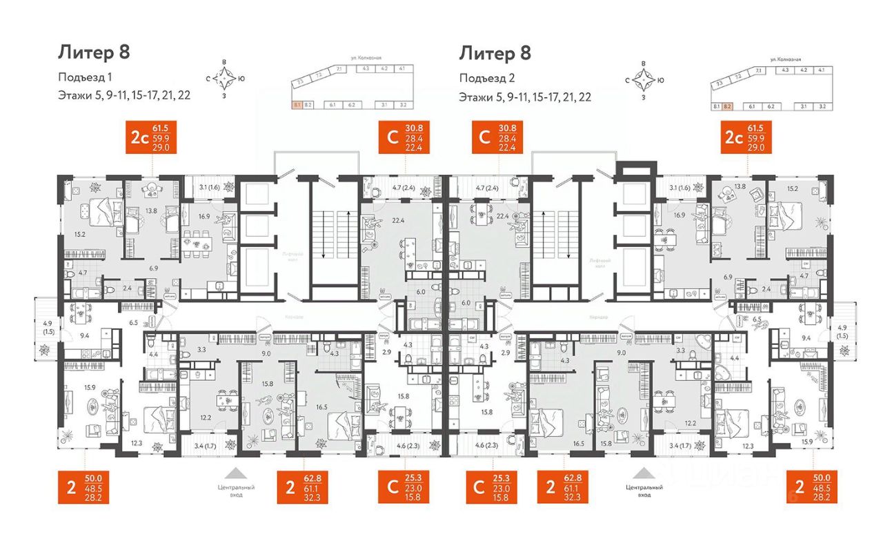 Продаётся студия в сданном доме (Литер 8), срок сдачи: III-кв. 2024, общей площадью 31.1 кв.м., на 21 этаже. Добрососедский квартал "Все свои"