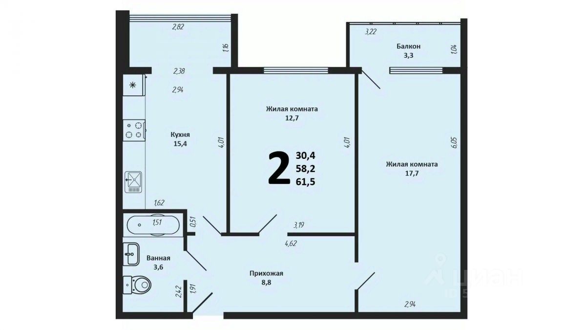 Продается просторная и уютная квартира на 2 этаже 6-этажного дома. Общая площадь квартиры составляет 58.20 кв.м., при этом на кухне имеется 15 кв.м. Продаваемое жилье идеально подойдет для тех, кому важен комфорт и удобство.