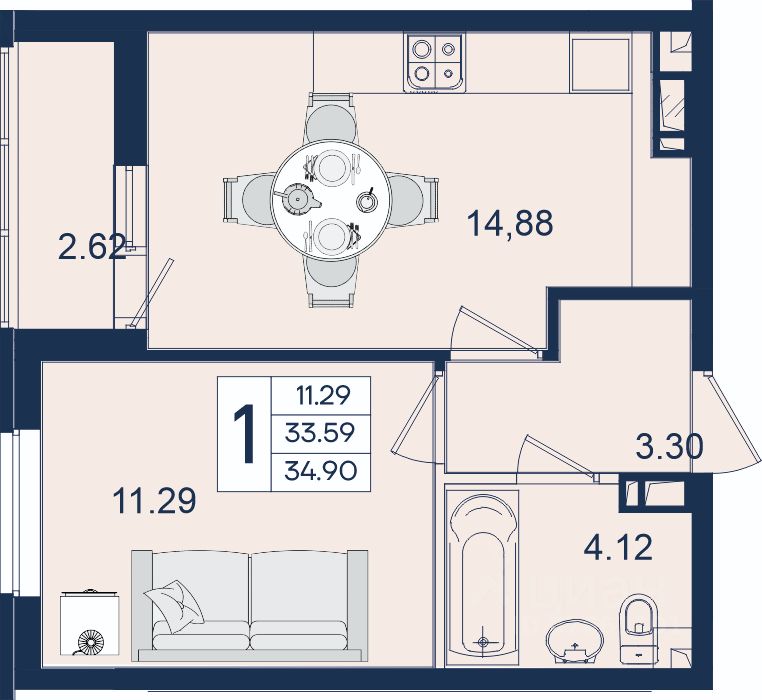 1 комнатная квартира с ремонтом 34.9 м², на 6 этаже в жилом комплексе "Дом 101". ЖК Дом 101 - это уникальное пространство на территории 101 га. Парк 20 га с спортивными площадками и амфитеатром. Школа на 1725 мест и пять детских садов. Благоустроенные дворовые территории с детскими площадками и зонами отдыха создают комфортную среду для семей. 42