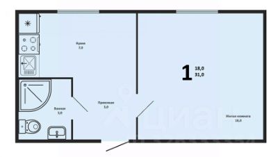 Площадь: 30,7 м².