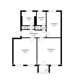 Великолепная планировка на 2 стороны дома с тремя просторными комнатами общей площадью 97,7 м2.