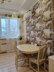 Квартира с качественным дизайнерским ремонтом. Кухня 12.5 кв. м оснащена итальянскими фасадами, всей необходимой техникой, обеденной зоной и прекрасным видом из окна. Установлены системы очистки воды: пятиступенчатый фильтр "Барьер" на кухне и дополнительная трехступенчатая система на входе. Отопление автономное газовое, что обеспечивает комфорт и экономию. Прихожая дополнена глубоким шкафом-гардеробом. Две изолированные комнаты 18.8 и 19.6 кв. м позволяют с комфортом разместить семью. Во всех помещениях, кроме кухни, установлены натяжные потолки. Системы кондиционирования установлены так же во всех комнатах. Ламинат имеет следы эксплуатации, что дает возможность при желании легко обновить интерьер под свой вкус. Особого внимания заслуживает утепленный балкон с отоплением и кондиционером, оборудованный под полноценное рабочее место с невероятным видом из окна. Квартира готова к заселению, часть мебели может остаться. Подходит под семейную ипотеку. На все вопросы с удовольствием ответим Вам по телефону или на показе..