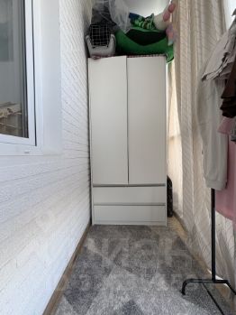 Две больших лоджии (4 и 3.4 квадратов), одна отапливается и с панорамными окнами, в нее смело можно вместить шкаф или одноместный диванчик.